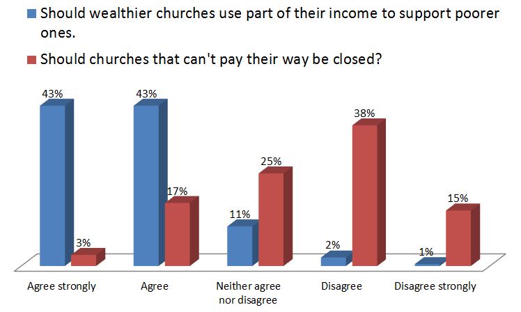 Many of the episodes are built around the problems of resourcing an inner city church today. One question posed in a recent episode was "How can you be church in a church that can't afford its lighting bill?". Two questions which often arise when discussing resources are, should more wealthy churches support their poorer sisters? and, when the worst comes to the worst should we close churches that don't pay their way and put the money to more fruitful use?. We found that viewers felt: