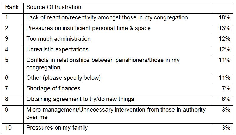 18% saw lack of resources as the major problem they faced, but for 42% it was just one problem amongst many. When asked what was the source of most frustration to them, Ministers responded as follows: