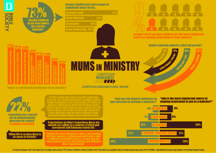 Between Thursday 5th and Monday 9th March 2015, Christian Research conducted an in-depth online survey, completed by 176 mothers across Great Britain employed in full-time Christian ministry.